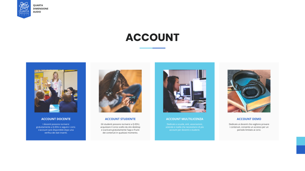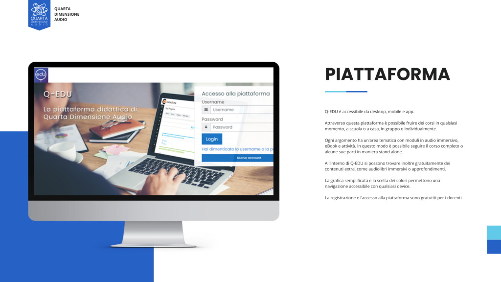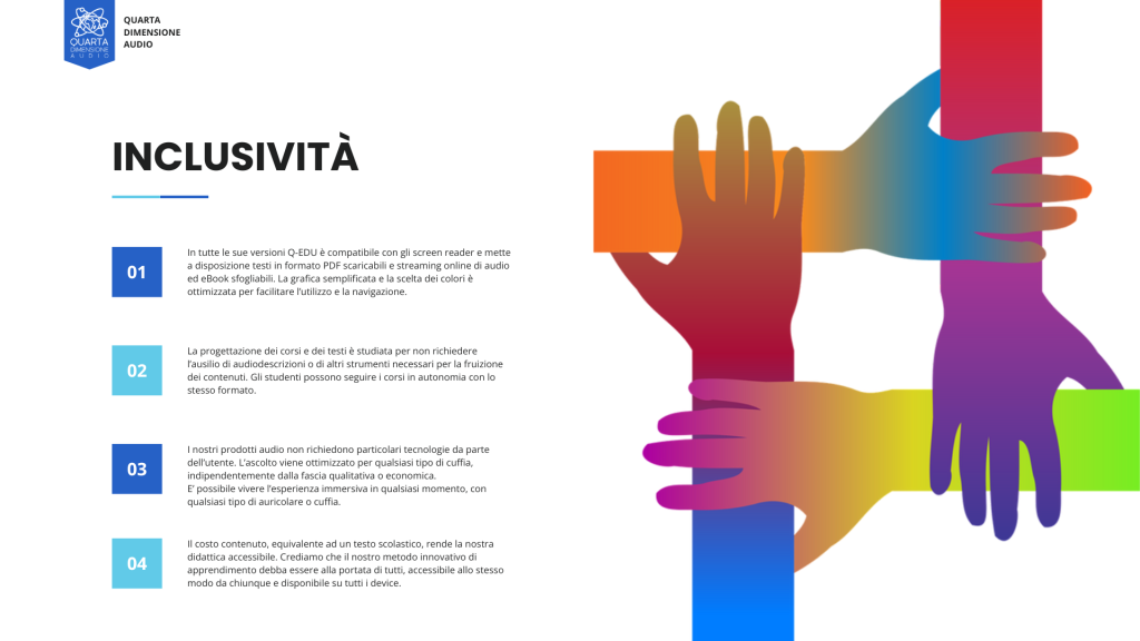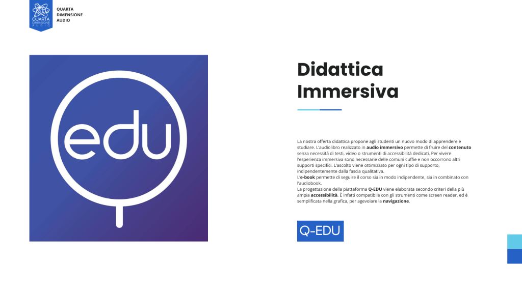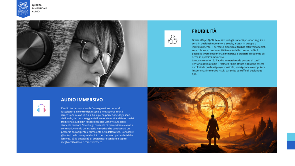 All’interno di Q-EDU si possono trovare inoltre gratuitamente dei contenuti extra, come audiolibri immersivi o approfondimenti.